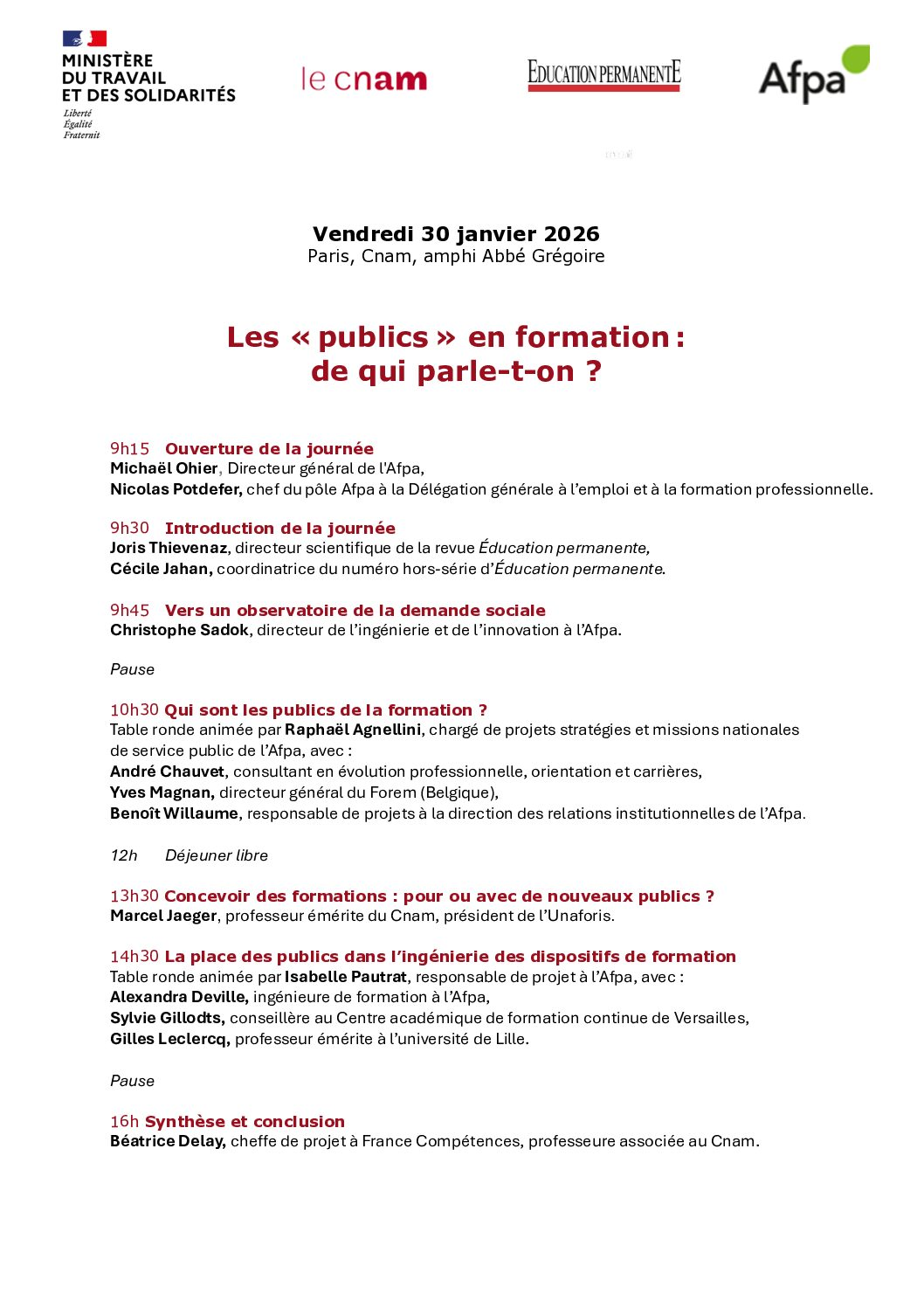 Dans la continuité de ces réflexions, le 30 janvier, l’Afpa, la DGEFP et Éducation Permanente organisent également, au Cnam de Paris, un colloque intitulé « Les “publics” en formation professionnelle, de qui parle-t-on ? ».